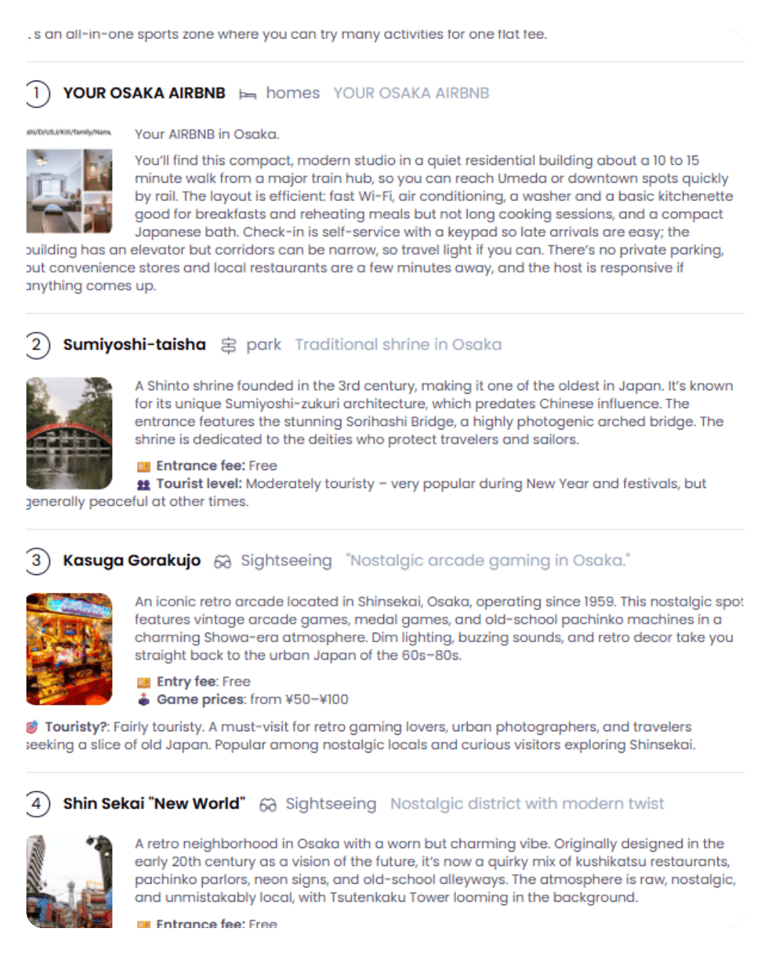 I don’t book for you but I’ll recommend the best areas to stay (near stations, vibes, budget-friendly etc.), and even suggest places based on your trip style.