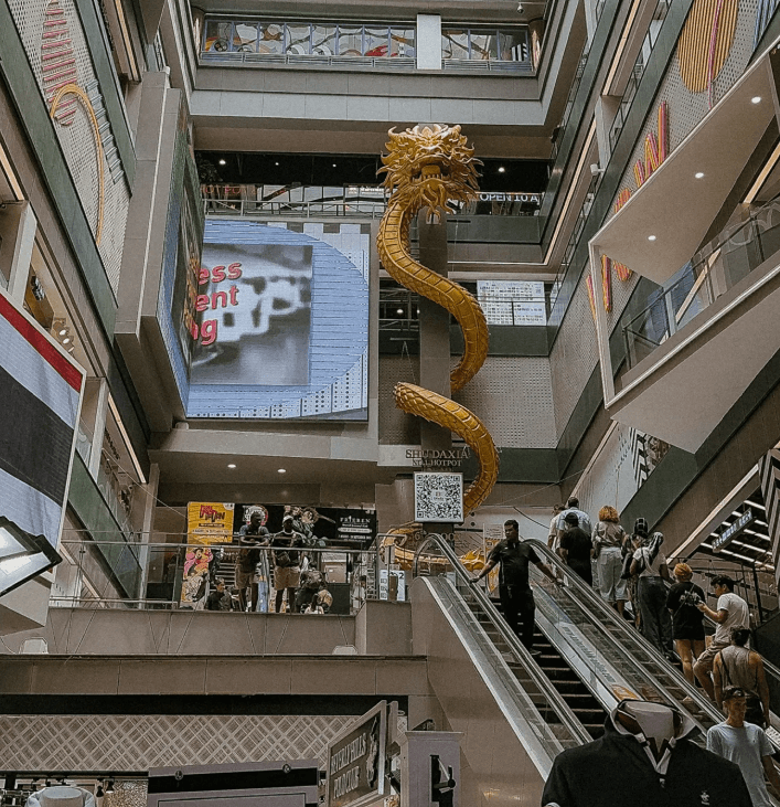 The mall itself is huge, with many shops and a big food court.