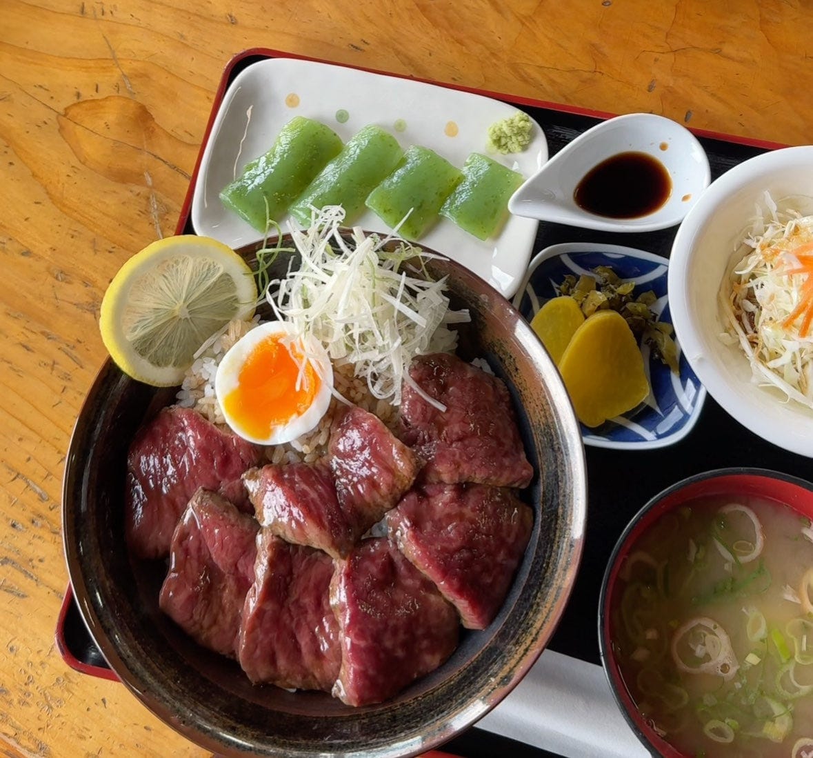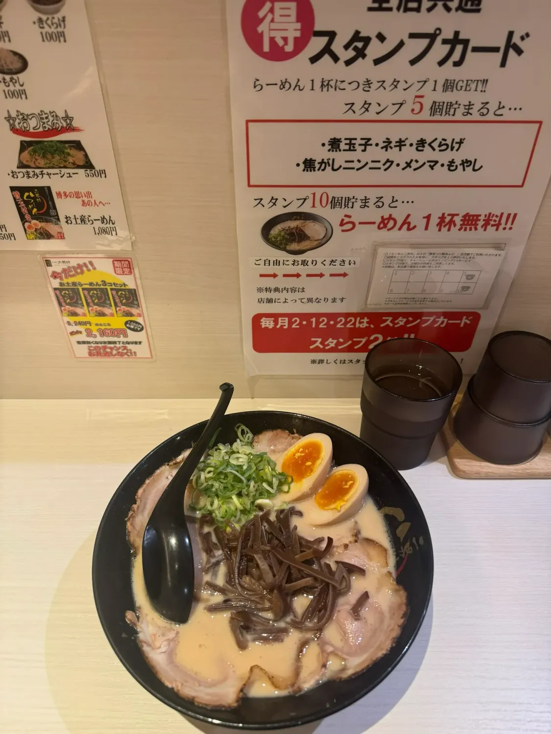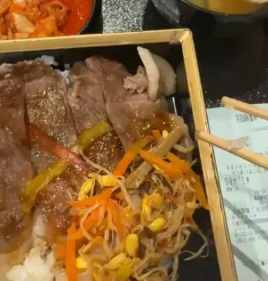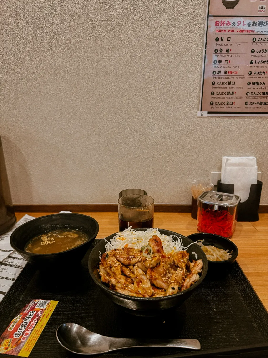 I ate at Dentetsu no Sutadonya. 1100¥. It was inside a BIG food mall.