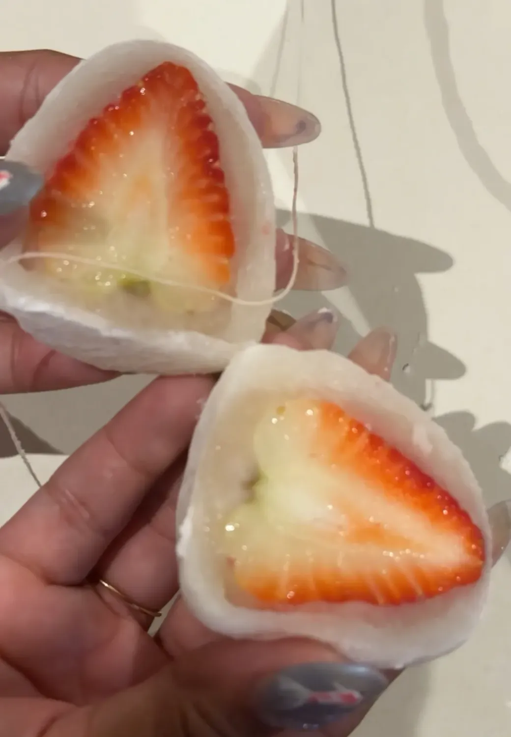 Strawberry daifuku mochi.