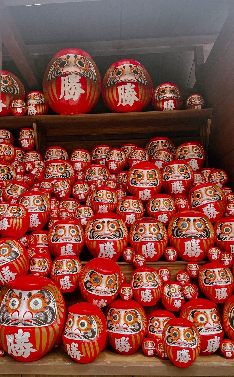 The temple grounds are covered with daruma dolls placed by visitors after making a wish. In autumn, the maple trees around the temple turn red, making the visit especially pleasant.